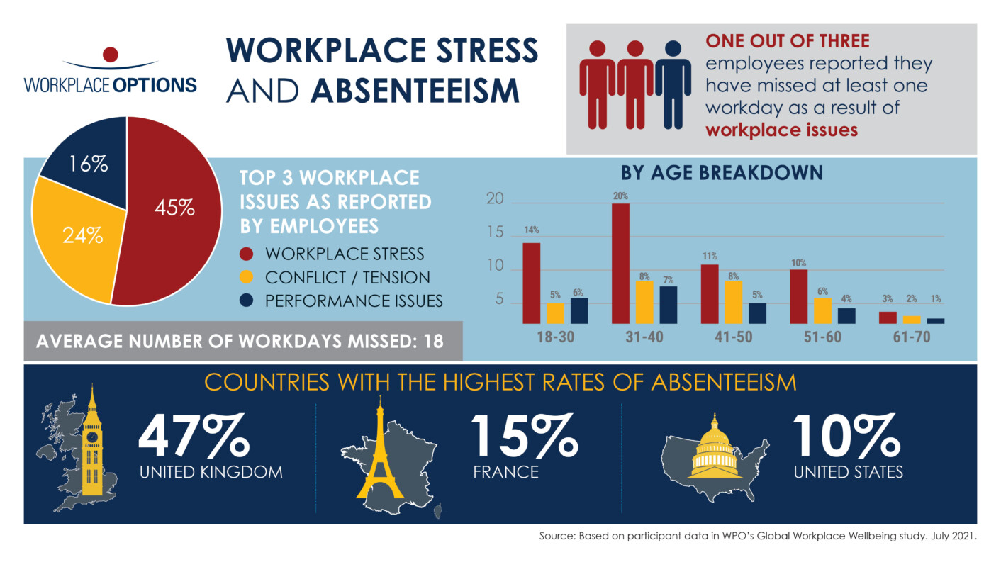 According to WPO’s report, the countries with the highest rates of absenteeism due to workplace issues are the following: