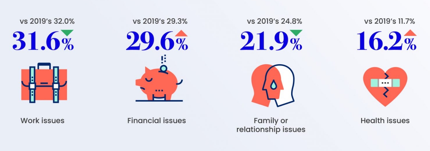 – que la pandémie a entraîné une prise de conscience plus intense des problématiques liées à la santé mentale, stress et anxiété inclus ; que cette constatation est plus évidente parmi les femmes et les jeunes générations ;