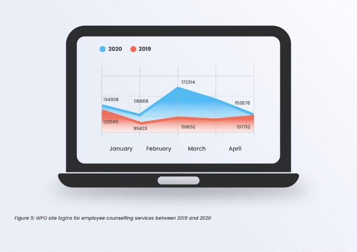 WPO réservant exclusivement ses services aux salariés à l’échelle mondiale, elle est bien placée pour approfondir les données associées aux demandes d’accompagnement au travail. En 2020 près de 80 % des salariés ont utilisé le service pour des raisons de stress, suivies par une humeur maussade et un sentiment d’anxiété.