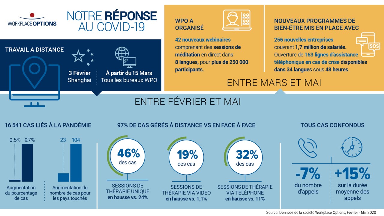 L'équipe de conseillers professionnels, de formateurs et de coachs en bien-être de Workplace Options fournit un soutien continu et des ressources pratiques conçues pour vous aider à traverser la pandémie de la COVID-19.